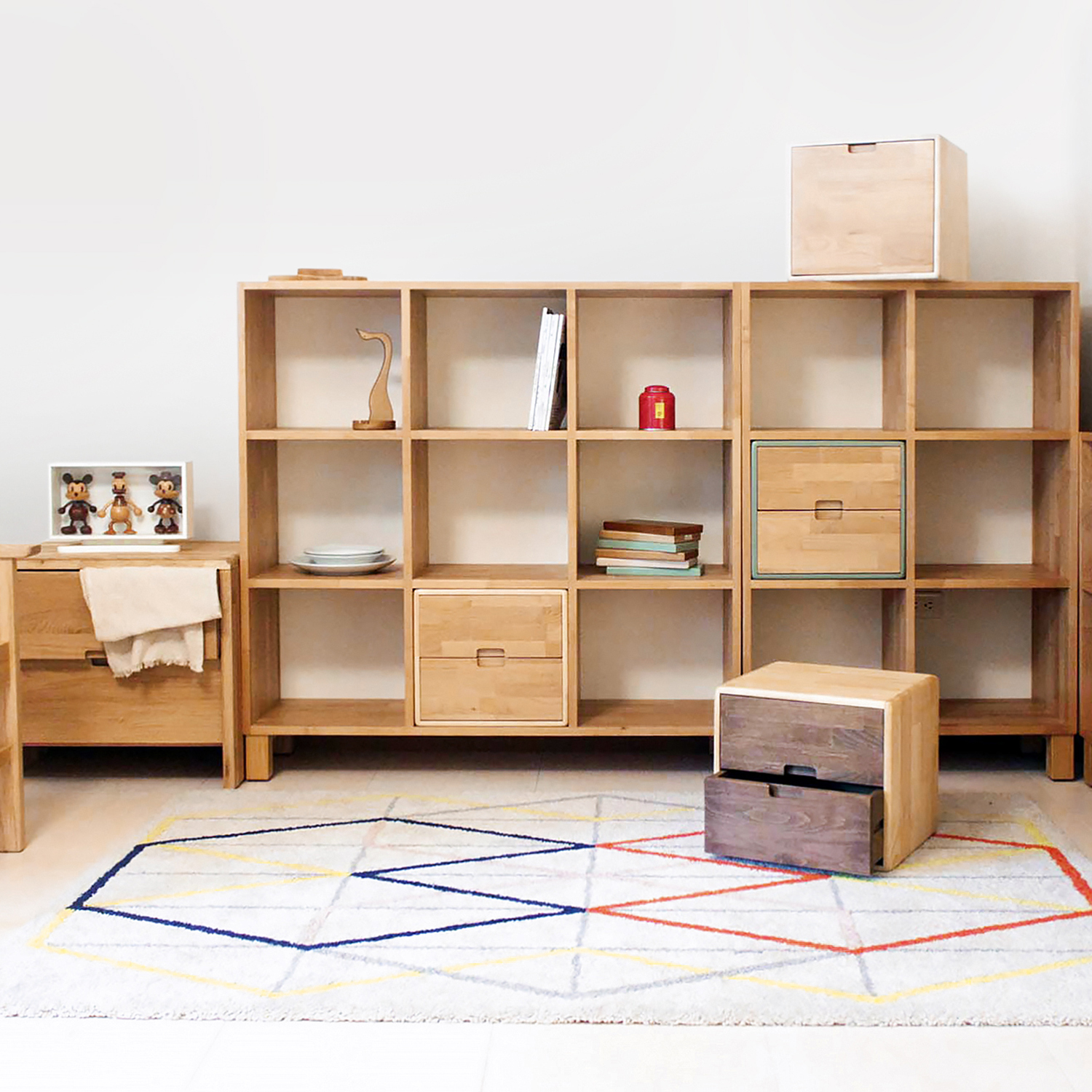 尺寸:寬 36.8 深 33 高 32.8 cm 材質:北美赤楊木(門片/抽面)+松木(外盒)