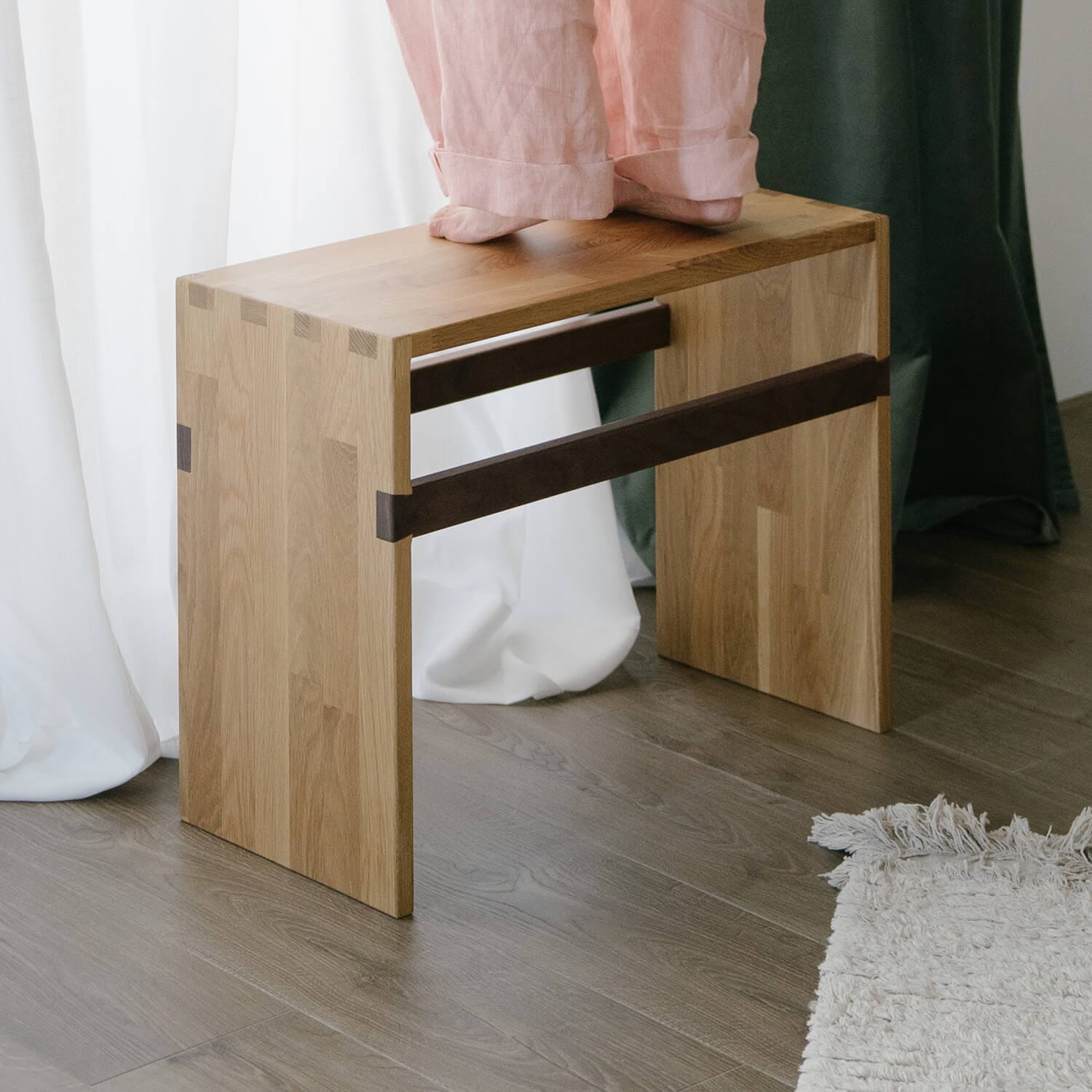 尺寸:寬 45 深 26 高 60 cm 材質:北美白橡木 + 胡桃木