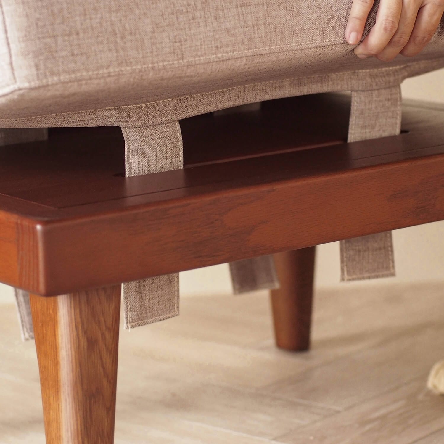 尺寸:寬 58 深 45 高 40 cm 材質:北美紅橡木 布墊:ABU 超纖仿亞麻 / ABU 涼感機能